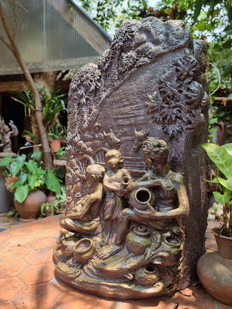 ศิลปวัฒนธรรมชุมชนด่านเกวียนที่แสดงให้เห็นถึงวิถีชีวิต สภาพสังคม วัฒนธรรม และเครื่องปั้นดินเผา ผ่านองค์ประกอบแบบเหมือนจริงที่สะท้อนให้เห็นการดำรงอยู่อย่างสงบเย็นของผู้คน ช่างปั้น บรรยากาศในช่วงเวลา พ.ศ. 2500 - 2530 ผ่านผลงานศิลปะเครื่องปั้นดินเผา